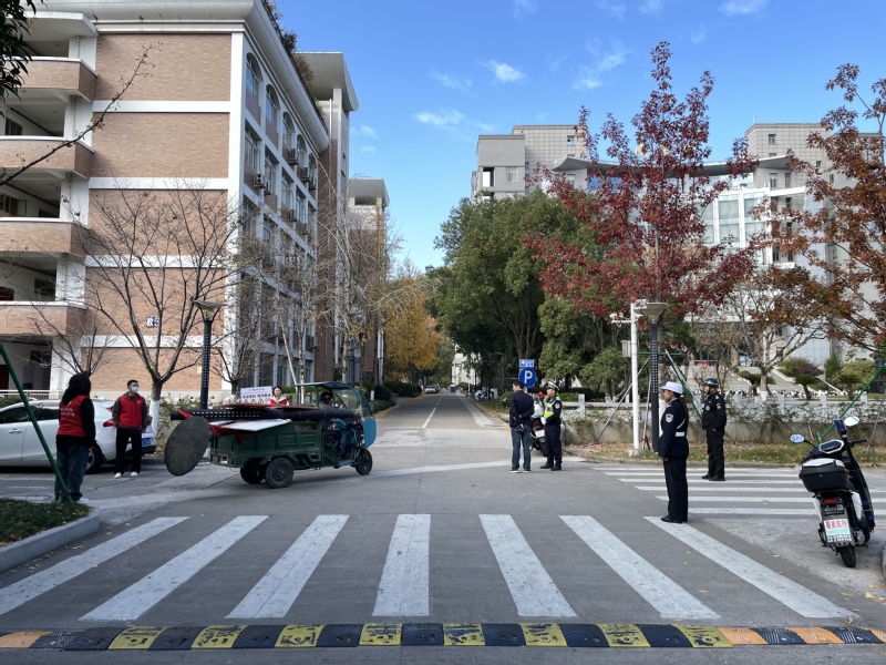电动自行车是目前大学生最常用的交通工具,但许多学生为了方便,常不佩戴安全头盔、违规载人、逆向行驶等,存在较大安全隐患。为进一步增强我校学生交通安全意识,倡导安全文明出行,有效预防和减少涉校园及学生交通违法和交通事故的发生,2025年12月10日,我校安全保卫部联合交警莲都大队白云中队的交警在校园开展交通违法行为教育劝导行动。