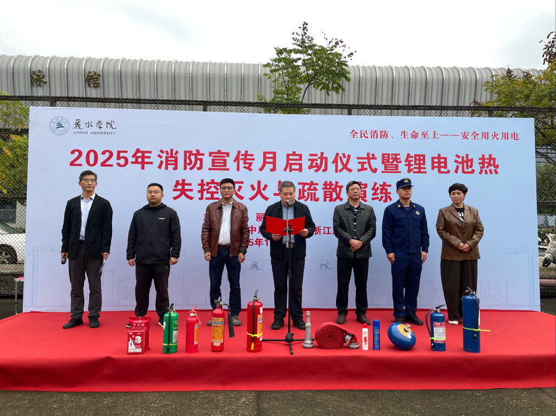 活动伊始,叶华松副书记代表学校作了讲话并宣布2025年丽水学院消防宣传月活动正式启动。他指出,消防安全工作事关师生生命财产安全,事关学校发展稳定大局。全校上下要牢固树立“人民至上、生命至上”理念,切实压实各级消防安全责任,增强风险意识,科学研判消防安全形势,不断夯实校园消防安全基础,坚决守牢校园消防安全底线。。要大力弘扬共建共治共享的消防安全文化,持续扩大宣传教育覆盖面、提升精准度,引导每一位师生成为消防安全的倡导者、践行者。